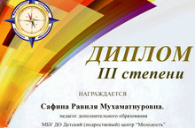 Педагоги нашего Центра приняли участие в III Всероссийском конкурсе "Дополнительное образование XXI века". Гильманова Альбина Фаилевна награждена дипломом 3 степени за разработку открытого урока на тему "Музыкальный образ в песне", Сафина Равиля Мухамматнуровна награждена дипломом 3 степени за разработку открытого занятия "Муса Джалиль - поэт-герой". Поздравляем!