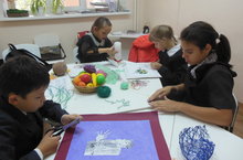 В объединении декоративно-прикладного искусства был проведен мастер-класс "Ниточная страна". Педагого раскрыл несколько техник наложения нитей на картину. А так же провели конкурс между детьми, "Кто быстрей закрасит картину нитями".