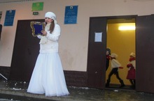 Традиционный праздник - Открытие поселковой Елки - прошел сегодня в школьном дворе. Учащиеся и родители водили хороводы вокруг елки и катались на горке.