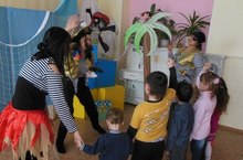 2 февраля студия художественно-эстетического развития провела интерактивно-развивающую программу-спектакль "Пираты карибского моря". Детей подобрали на судно "Черной жемчужины", набрали в команду морских волков и отправили на поиски приключений. Вместе с капитаном ДЖеком Воробьем и его верными друзьями Одноглазым Джо и пираткой ДЖенни ребята прошли все испытания на своем пути, показали свою ловкасть и остроту ума. И в конце приключения отыскали сокровища старого пирата Барбоса!!