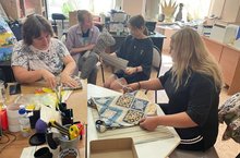 В лагере при школе №97 наш педагог дополнительного образования Арбузова Е.В. провела мастер-класс по декоративно-прикладному искусству на тему "Веселые ладошки"