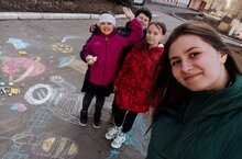 В объединении "Палитра идей" (педагог - Ермакова А.С.) занятие прошло на открытом воздухе, посвящённое Дню космонавтики. Учащиеся вместе с педагогом выполнили рисунки мелками на тему "Космос и Я".