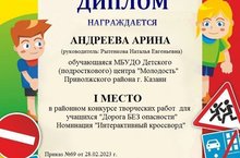 I место - Андреева Арина в номинации "Интерактивный кроссворд" (5-8 класс);