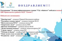 Итоги конкурса информационных площадок волонтеров! 26.08.2015 Вот и подвели итоги конкурса среди информационных площадок городских волонтеров. МБУ ДО "Центр детского творчества "Олимп" победил в номинации "Лучшая информационная станция". Наши поздравления победителям!