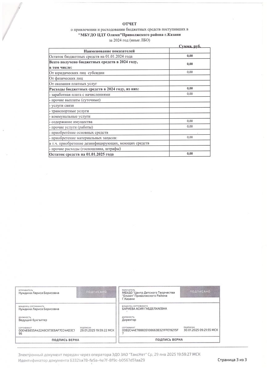 Отчет о привлечении и расходовании бюджетных средств за 2024г.
