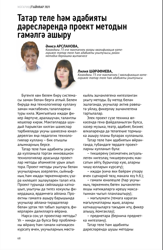 Публикация в журнале «Мәгариф»! №1/ 2021