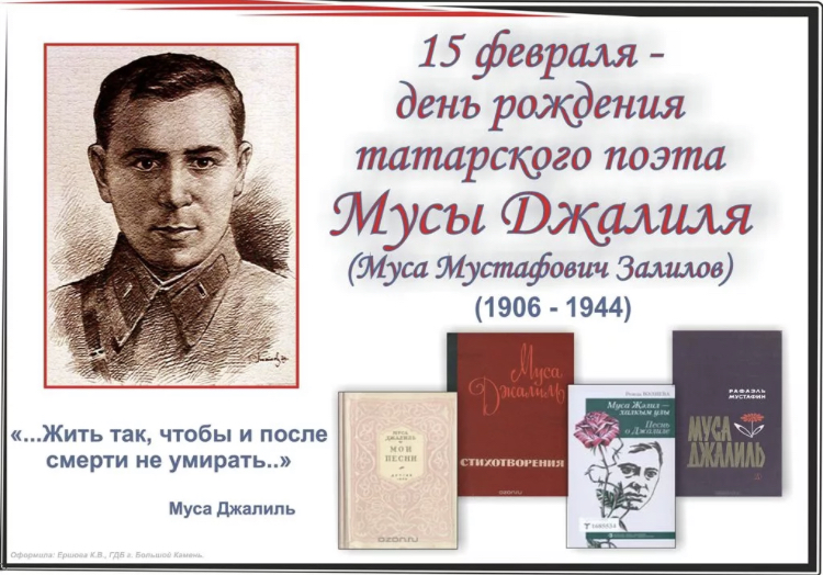 Опубликовано: 15.02.2021В рамках мероприятий, посвященных 115-летию со дня рождения поэта, Героя Советского Союза Мусы Джалиля в нашей школе прошли классные часы, на которых классные руководители рассказывали учащимся о непростой биографии поэта, о его творчестве , просматривались и обсуждались документальные фильмы о поэте-герое и его знаменитой. В библиотеке школы была организована рубрика " Литературный факт" и выставка книг Мусы Джалиля.