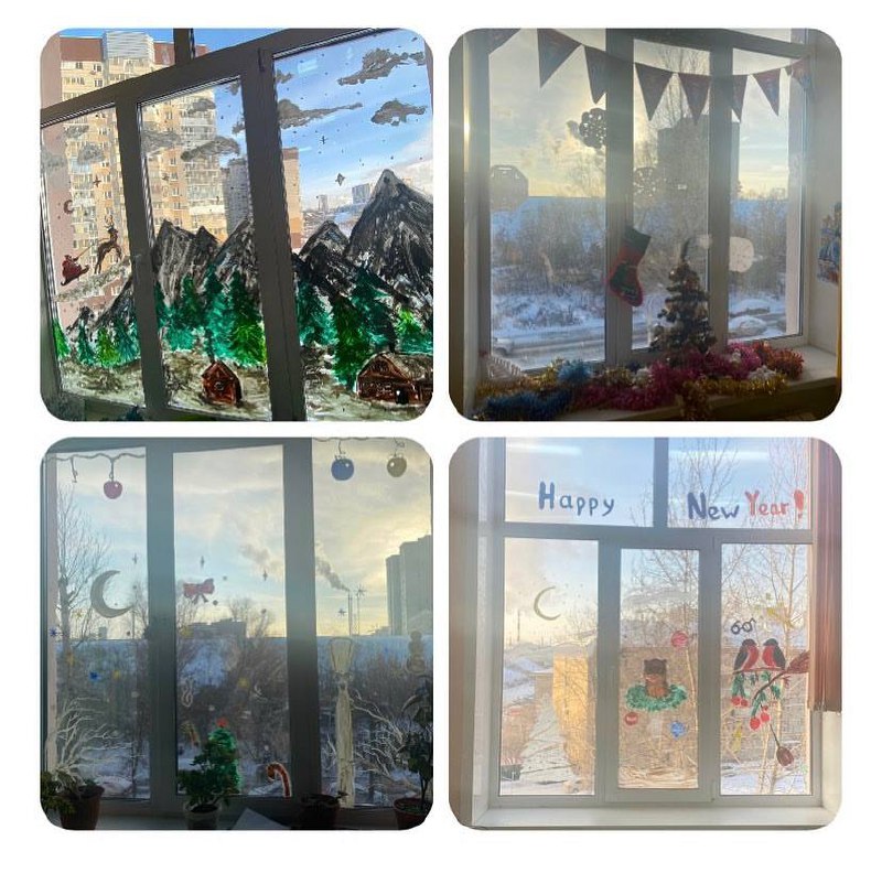 Опубликовано: 28.12.2021Украшать и наносить различные рисунки на окна к новому году уже стало доброй традицией в нашей школе. И это правильно. Как будто из сказки – узоры на стеклах, словно нарисованные рукой Деда Мороза, красивые новогодние украшения) А уж как наши ученики любят украшать окна – для них это не только подготовка к новогоднему торжеству, но общение с одноклассниками, что ещё больше сближает ребят, и дарит минуты искренней радости.