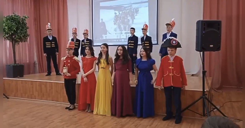 Мы обратились к этой теме,чтобы учащиеся узнали об этом сражении. Взяли за основу стихотворение М.Ю.Лермонтова «Бородино». В этом мероприятии участие приняли ученики 6а и 7а класса. Выражаем благодарность Наиле Галимовне Абдрашитовой- зав.библиотекой и Раисе Фаргатовне Саттаровой -преподавателю русского языка и литературы.