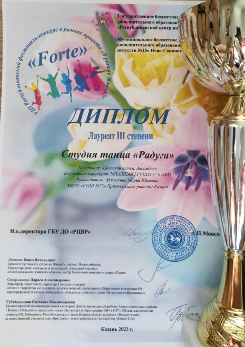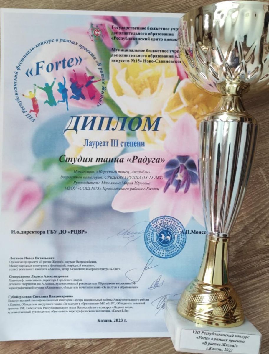 Нашу школу на конкурсе представляли хореографический коллектив "Радуга" (рук.Мамыкина Мария Юрьевна) и вокальный ансамбль "Лейсан" (рук.Гатауллина Венера Дамировна). Яркие выступления не оставили равнодушными ни зрителей, ни профессиональное жюри. Сразу пятью дипломами пополнилась копилка школьных наград.