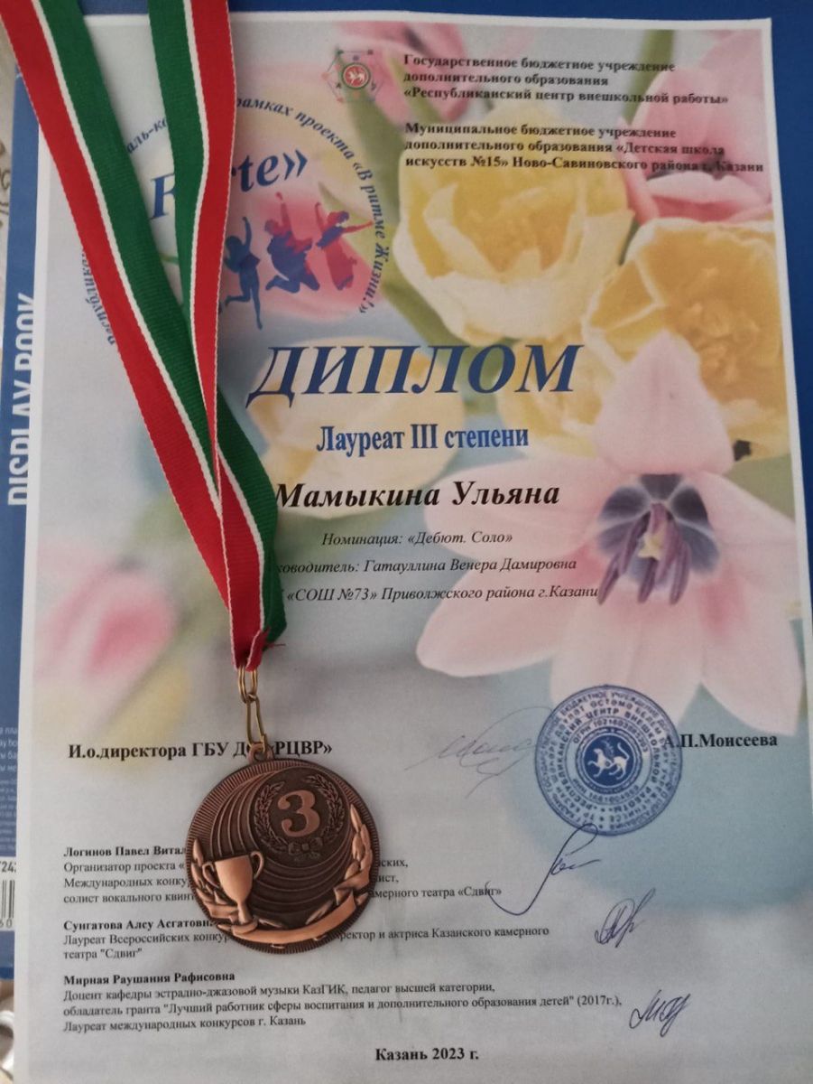 Вокальный ансамбль "Лейсан" - Лауреаты III степени Мамыкина Ульяна - Лауреат III степени