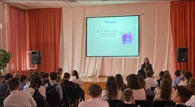 В этом году тема Урока - "Город будущего: как квантовые технологии меняют нашу жизнь". На этом уроке ребята узнали, как квантовые технологии влияют на мобильную связь, транспортную систему и даже медицину, узнали, как это все связано, как меняет нашу жизнь и как стать квантовым ученым.