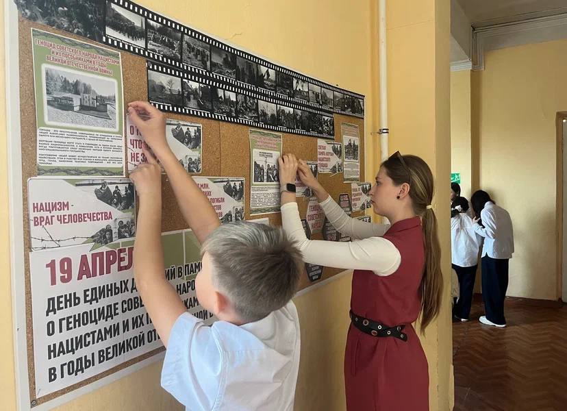 В нашей школе накануне этого важного дня советник директора по воспитанию, Екатерина Сергеевна, провела беседы с учащимися, в которых обсудила значение этого дня и важность сохранения исторической памяти. Также был оформлен стенд, на котором представлены факты и свидетельства о тех ужасных событиях.