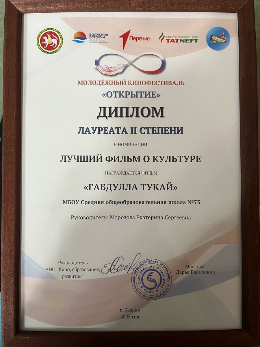 Опубликовано: 05.05.2025В этом году темой стали "Герои России", и юные кинематографисты снимали фильмы о выдающихся людях Татарстана: от учителей и врачей до космонавтов! Наша команда рассказала историю Габдуллы Тукая, и мы безумно рады, что наш фильм о культуре был отмечен 2-м местом!