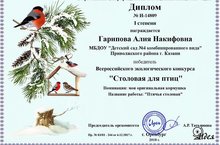 Поздравляем нашу дорогую Гарипову Алию Накифовну с победой во Всероссийском экологическом конкурсе "Столовая для птиц". Поздравлем!! Так держать!!!