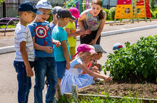 В этом году мы традиционно организовали огород и воспитанники садика каждый день ухаживают за ним. Малыши поливают, старшие пропалывают, а урожай собираем мы все вместе. В этом году мы посадили много зелени, огурцы, помидоры, картошку, кабачки, баклажаны, морковь и много других вкусных и полезных овощей. Собрали богатый урожай. Как же здорово видеть результаты своего труда.