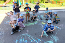 В честь Дня защиты детей в нашем центре проходит веселая дискотека на улице, мы рисуем мелками рисунки на тему детей и каникул, играем с мыльными пузырями и угощаемся молочным коктейлем. Настроение отличное, ведь впереди 3 месяца лета!
