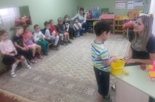 В группе "Ребята Совята" прошел открытый урок по татарскому языку. Воспитанники с удовольствием играли вместе с учителем Лейлой Фирдусовной в ролевую игру "Магазин", угадывали загадки на татарском языке.
