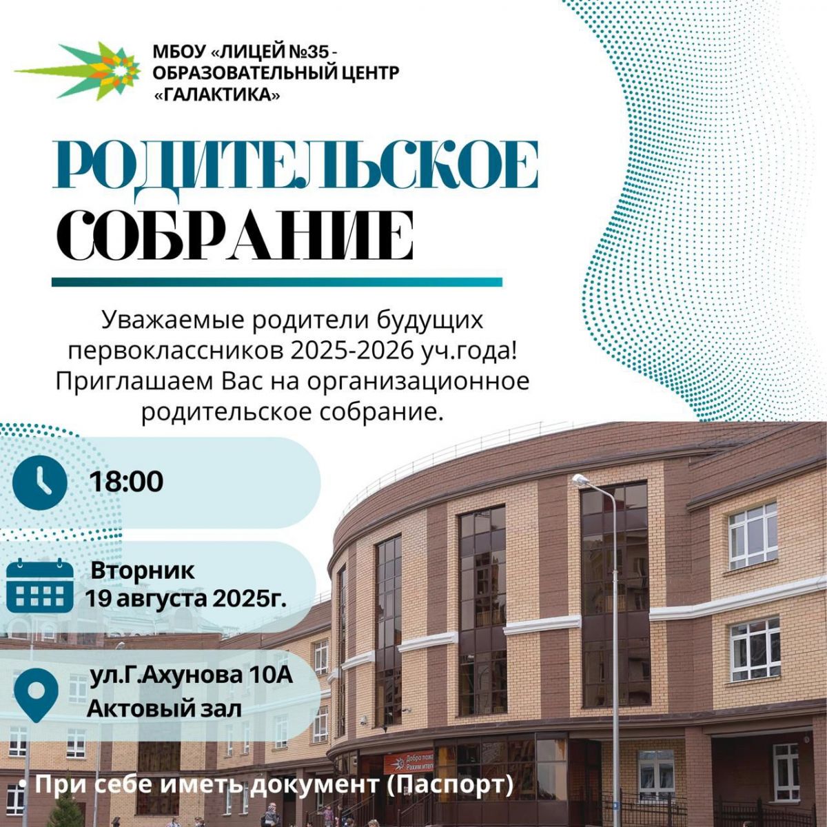 19.08.2025 в 18:00 состоится родительское собрание для будущих первоклассников