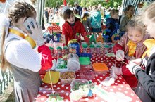 На спортивной площадке были установлены небольшие палатки, в которых сами ученики, под руководством учителей, продавали различные поделки, игрушки, выпечку и многое другое