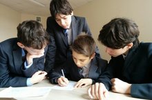 Набор в 1 классы на 2015-2016 учебный год ЗАВЕРШЕН по причине отсутствия свободных мест (основание: пункт 5 приказа МО и Н РФ от 22.01.2014г. №32 «Об утверждении порядка приема граждан на обучение по образовательным программам начального общего, основного общего и среднего общего образования»).На 15 апреля 2015 года набрано 175 детей (7 классов по 25 человек).По вопросу устройства ребенка в другую образовательную организацию обращаться в Отдел образования «Управления образования исполнительного комитета муниципального образования города Казани по Вахитовскому и Приволжскому районам» .Администрация школы -