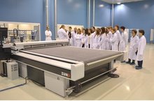 Чтобы ребята в полной мере почувствовали себя участниками производственного процесса, они надели бахилы и белые халаты. Далее группа проследовала по маршруту изготовления элементов конструкции композитного крыла самолета, начиная с участка раскроя деталей, где при помощи автоматизированных раскройных центров происходит раскрой сырья – препрега, на основе углеродных волокон, и его выкладка на оснастку при помощи лазерных проекционных систем.