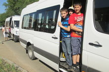Экскурсии по городу ребята совершают на комфортабельных автобусах.