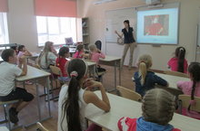 В этом кружке в форме игры (кружок проходит в лингафонном кабинете) узнаю новые слова связанные с космосом, учатся строить предложения и общаться в форме ролевых игр.