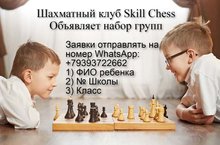 Шахматный клуб Skill Chess объявляет о наборе групп. Занятия проводятся 2 раза в неделю, 8 занятий в месяц. Стоимость - 1400 руб.