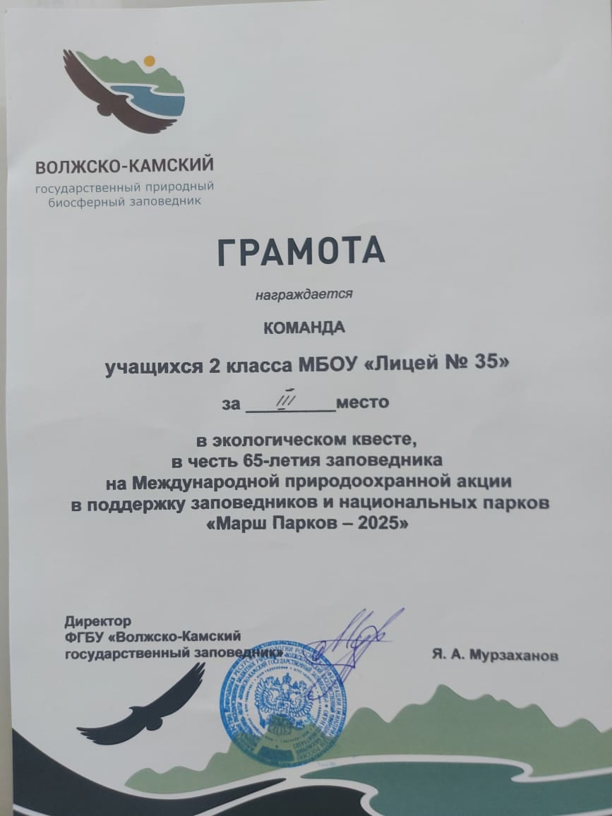 Девиз Марша Парков в 2025 году – «За сохранение и восстановление природы малой родины!» Ученики 2Э класса и 6К класса приняли участие в экологическом квесте и заняли почётное 3 место! Молодцы!