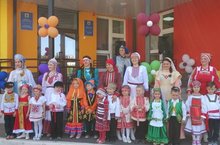 Дети с воспитателями в национальных костюмах семи народов Поволжья,