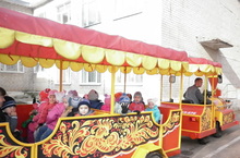В гостях у ребят детского сада аттракцион "Веселый паровозик"