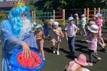 Владыка дна морского приготовил для ребят много занимательных игр, повеселил и пригрозил, если ребята забудут правила поведения на воде.