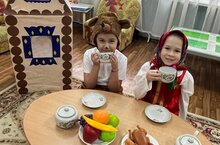 В течение недели юные артисты знакомились с русскими народными сказками, участвовали в подвижных играх “Мышеловка” и “У медведя во бору”. Дети рисовали, лепили и конструировали.