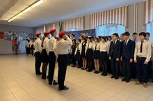 Школьная учебная неделя началась с традиционного выноса флагов Российской Федерации и Республики Татарстан.