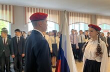 Школьная учебная неделя началась с традиционного выноса флагов Российской Федерации и Республики Татарстан.