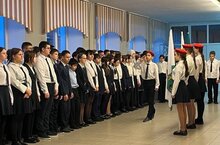 Школьная учебная неделя началась с традиционного выноса флагов Российской Федерации и Республики Татарстан.