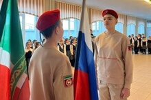 Школьная учебная неделя началась с традиционного выноса флагов Российской Федерации и Республики Татарстан.