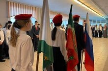 Школьная учебная неделя началась с традиционного выноса флагов Российской Федерации и Республики Татарстан.