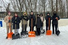 К акции «Чистый каток» присоединились учащиеся 10-х и 11-х классов совместно с классными руководителями