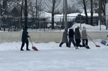 Ребята вместе с классными руководителями и родителями дружно взялись за лопаты и расчистили школьный каток от снега.
