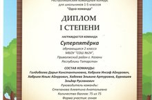 Поздравляем команду "Суперпятерка" (2В класс) с 1 местом в Республиканском очном конкурсе "Одна команда" для учащихся 1-5 классов (рук. Степанова А.А.). Молодцы!