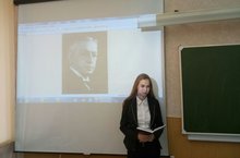 В рамках проекта «Культурный город – грамотный город» в нашей школе 19 октября состоялся литературный праздник, посвященный жизни и творчеству И.А.Бунина. Участие приняли ученики 10А,Б и 11А классов. В их исполнении прозвучали стихи и отрывки из прозы писателя, которые сопровождались рассказами о жизни писателя.