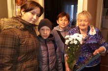 Ученики 6В класса вместе с классным руководителем Харитоновой М.В. поздравили ветерана Великой Отечественной войны, Андриянову Александру Григорьевну с Днем пожилого человека и Днем ветерана.