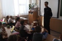 Перед каникулами во всех классах прошли классные часы по теме "Безопасные каникулы", где выступил сотрудник УВД МВД Зайнуллин Б. И.