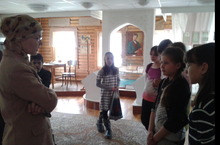 Экскурсию по школьному музею провели учащиеся 5 "А", 5 "Б" и 8 "Б" классов. Они рассказали о быте татарской деревни конца XIX начала XX веков и экспонатах комнаты боевой славы.