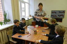 Также гостям семинара было показано занятие кружка ИЗО и технологии, на котором учащиеся 2 А класса осваивали технику вышивки по картону - изонить.
