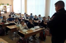 В преддверии осенних каникул старший государственный инспектор ОДН ОГИБДД УМВД РФ по городу Казани капитан полиции Егоренков А.А.провел беседу с учащимися по вопросу профилактике детского дорожно-транспортного травматизма, нарушений правил дорожного движения в осенний период. Напомнил ребятам основные правила поведения на дороге, объяснил, как безопасно переходить проезжую часть по пешеходному переходу.