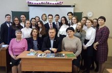 2019 нчы ел, Россия Федерациясе Президенты Владимир Путин карары белән, театр елы дип игълан ителде. Ил субъектларында башкарма хөкүмәт органнарына Театр елы кысаларында чаралар уздыру тәкъдим ителде. Татарстан Республикасы театрлары әлеге тәкъдимне тормышка ашыру максатыннан белем бирү оешмаларына очрашуларга йөреп, чаралар оештыра башладылар. Шушы уңайдан, 13 нче декабрь көнне Галиәсгар Камал исемендәге Татар дәүләт академия театрыартистлары безнең мәктәпкә очрашуга килделәр. Артистлар театр тарихы турында сөйләделәр, презентация ярдәмендә театрның тамашачыларга куренми торган урыннарын күрсәттеләр. Укучыларны кызыксындырган сорауларга җавап бирделәр.
