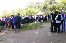 Сегодня во время первого урока в школе была проведена плановая эвакуация. По сигналу дети вместе с учителями без паники, быстро выбежали на спортивную площадку около школы. Уложились в нормативное время. -